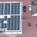 Der Standort von Selterdruck in Niederselters aus der Luft: Im Bild links die 2019 neu errichtete Produktionshalle mit der flächendeckenden Photovoltaikanlage. Sie deckt einen Großteil des Strombedarfs der Druckerei.