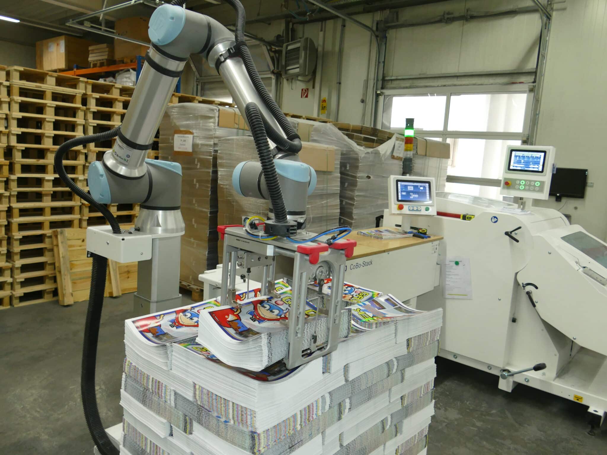 Silber Druck ist bekannt dafür, dass das Unternehmen bei seinen Workflows und Produktionsprozessen eine höchstmögliche Automatisierung anstrebt. Die Installation der MBO CoBo-Stacks sind ein weiterer Schritt zur autonomen Printproduktion.