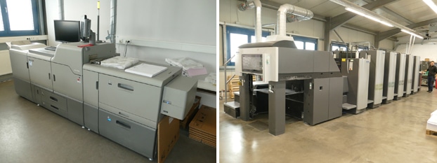 Ein Digitaldrucksystem Ricoh Pro C 7200e und eine Heidelberg Speedmaster CX 75-5 + Lack sind die Garanten für eine hochqualitative Printproduktion.