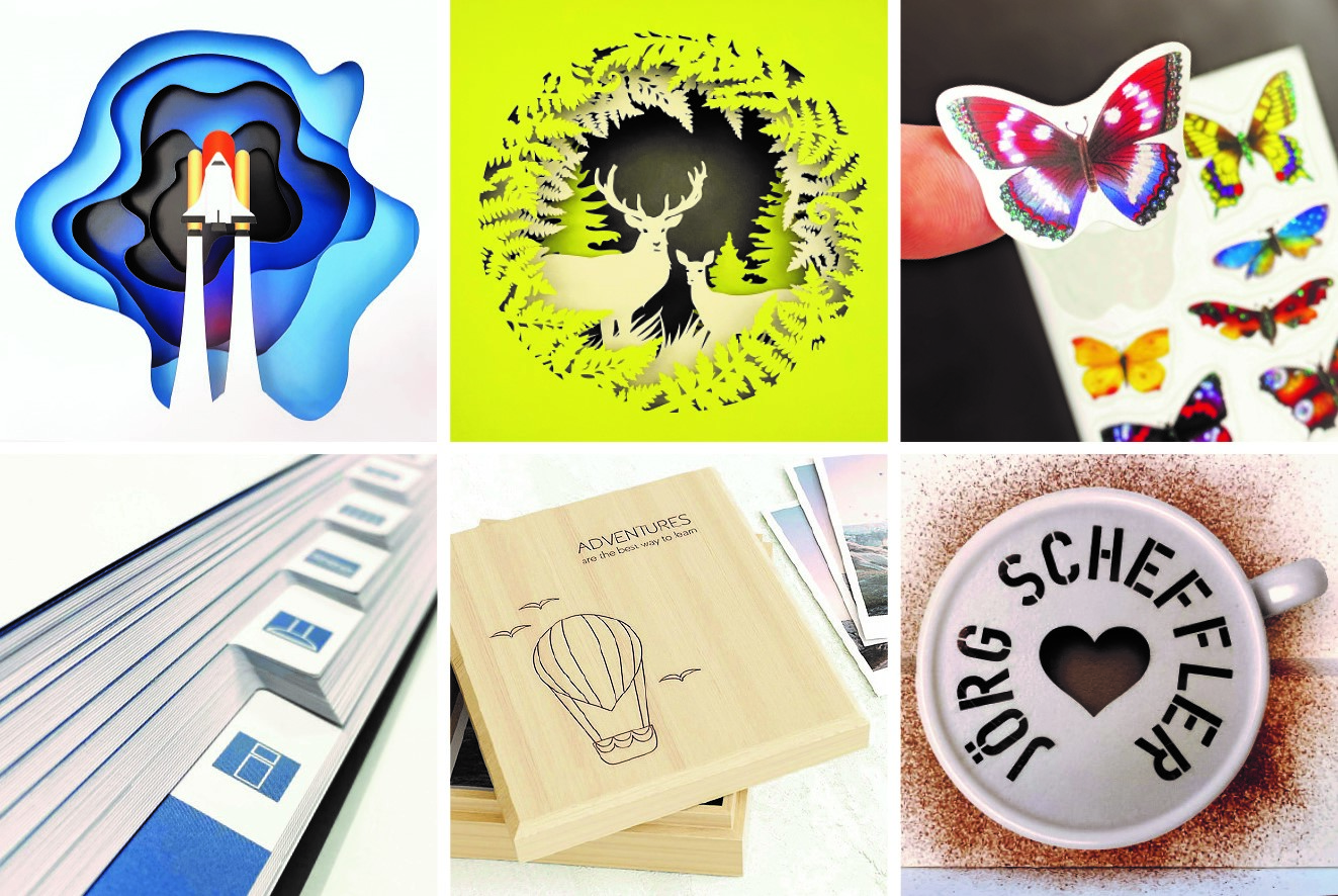 Abgelenkt durch ein Drei-Achs-Spiegelsystem bearbeitet ein sehr feiner Laserstrahl in Hochgeschwindigkeit wie erwähnt selbst dreidimensionale Elemente bis zu einer Höhe von 150 mm. Lukrative Anwendungsgebiete finden sich in den Bereichen Bücher (beispielsweise außergewöhnliche Book-on-Demand-Produktionen), Direct Mailings, Grußkarten, Etiketten oder Verpackungen.