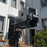 Die Einbringung selbst war jedoch nicht ganz so einfach aufgrund der schwierigen Situation vor Ort. Es gab keine Zufahrt direkt zum Drucksaal, weil dieser auf der rückwärtigen Seite des Gebäudes liegt. Schließlich wurde von Aribas eine Kranfirma beauftragt und eine Seitenwand des Drucksaals geöffnet. „Wir hatten Glück mit dem Wetter“, erinnert sich Matthias Harzen. „Wenig Wind und kein Regen.“ Die Einzelteile der Maschine konnten so trocken mit dem Kran abgeladen und über das Gebäude hinweg an die richtige Stelle gehoben werden. Im Zuge dessen wurde die alte Maschine von den Aribas-Monteuren abgebaut und abtransportiert.