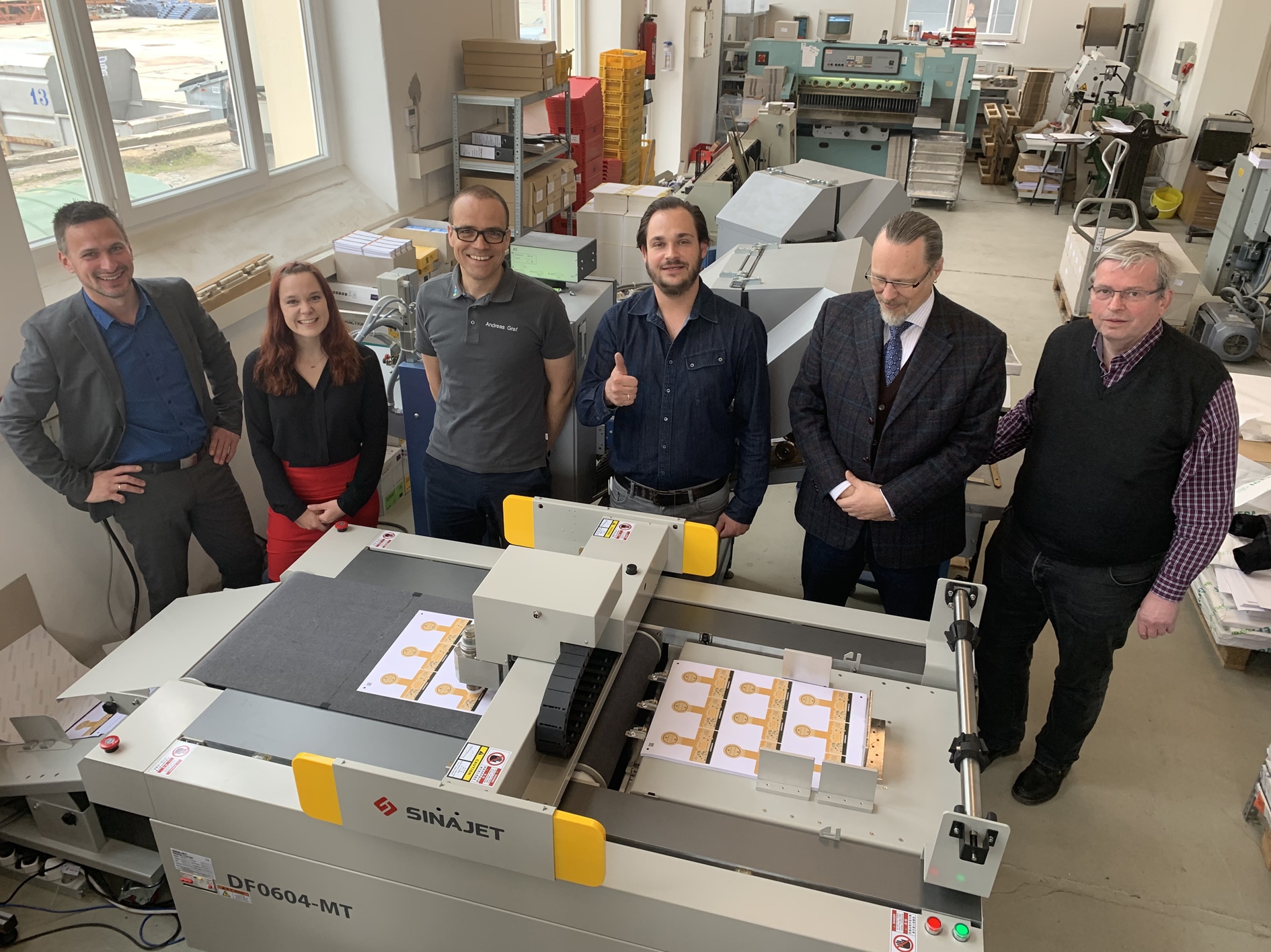 von DMS Export Import – hingegen schien dafür bestens geeignet zu sein, da er automatisiert arbeitet und große Serien unbeaufsichtigt produzieren kann. Ein Produktionstest im Februar 2021 im Showroom von dms digital in Dresden zeigte sehr gute Ergebnisse: Der Sinajet DF0604-MT ist schnell, präzise und einfach zu handhaben durch ein einfaches Programmhandling mittels QR-Code-Steuerung.