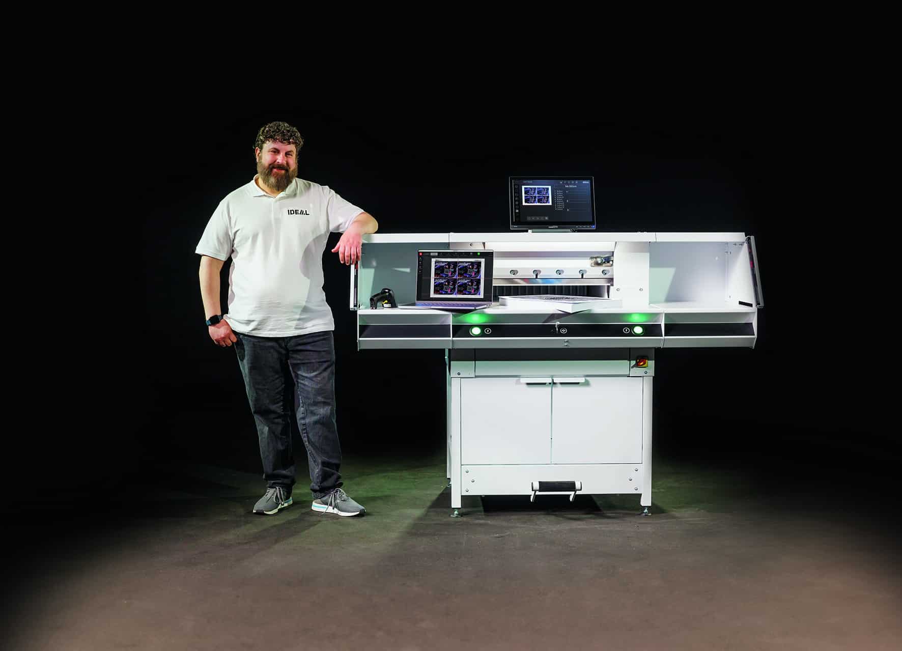 Entwickelt wurde Speedcut für die Ideal-Schneidemaschinen THE 56 und den großen Bruder namens THE 68, der vom Balinger Hersteller Krug+Priester für das Quartal 1/2025 angekündigt und baugleich zu THE 56 ist – jedoch, wie der Name schon sagt, Formate bis zu 68 Zentimeter Länge verarbeitet. Beide Stapelschneider verfügen über ein großes intuitives Touchdisplay. Hier kann der Anwender auch direkt seine Schneid-befehle eingeben und so einen Schneidjob direkt am Display des Systems steuern. Die Systeme arbeiten mit einer Sicherheits-Lichtschranke und hydraulischer Pressung. Schneidtisch und Arbeitsbereich sind ergonomisch ausgerichtet und individuell anpassbar.