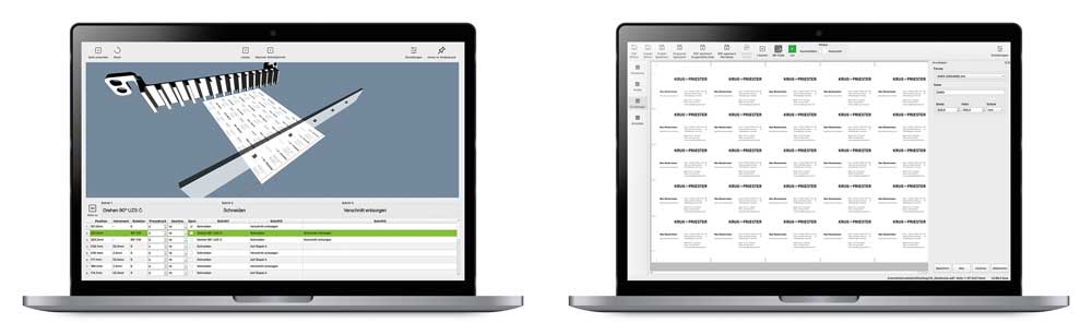 Die Benutzerführung namens „EasyMode“ ist intuitiv und einfach. Insbesondere auch ungeschultes Personal ist somit schnell in der Lage, Schneidjobs von fertigen Druckbogen Schritt für Schritt an der Schneidemaschine durchzuführen. Für die sichere Arbeitsvorbereitung hat Krug+Priester etwas ganz Besonderes entwickelt: den 3D-Simulator. Der Speedcut-Simulator zeigt am Monitor jeden einzelnen Arbeitsschritt am Schneidgut an und simuliert jeden geplanten weiteren Arbeitsschritt, wie zum Beispiel das Drehen des Schnittguts, und jeden Schnitt bis zum fertigen Printprodukt. Für zusätzliche Sicherheit kann die integrierte Sprachausgabe sorgen, die alle Arbeitsschritte entsprechend der Abfolge im Schneidprogramm vorliest und so auch ungelernten Kräften das Arbeiten erleichtert. Verfügbar ist die Speedcut-Software für Windows und MacOS.