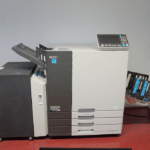 „Wir haben aus Gründen der Umweltfreundlichkeit gezielt nach einer Inkjet-Maschine gesucht, die hohe Grammaturen verarbeiten kann“, begründet Bersch seine Wahl. „Zudem sollte sie über einen möglichst langen Zeitraum vom Anbieter gewartet werden.“ Bei der ComColor handelt es sich um eine überholte Gebrauchtmaschine aus dem Showroom von Riso in Frankfurt, die zufällig zur Verfügung stand und mit einem High-Stacker sowie dem Fiery FS2000C-Druckcontroller ausgestattet war. „Das passte vom Investment her gut, denn wir fingen ja erst an mit dem Digitaldruck“, sagt Stefan Bersch.