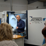 Schon eine Woche vor dem eigentlichen „Stichtag“, am 22. November 2025, waren Mitarbeiter und ihre Familien, Freunde, Vertraute und langjährige Wegbegleiter zu einer Open House in Diesdorf geladen und erhielten interessante Einblicke in die tägliche Arbeit eines graphischen Dienstleisters und Zulieferers. Bei einem Betriebsrundgang durch die Fertigung, beginnend im Bereich der Falzwalzenproduktion, wurden den Gästen sämtliche Maschinen und Prozesse transparent aufgezeigt. Highlights dabei waren die neue, im Sommer gelieferte Drehmaschine sowie die erst im Herbst in Betrieb genommene Automatisierung einer Anlage. Ebenfalls nicht fehlen durften natürlich spannende Einblicke in den Bereich der Gebrauchtmaschinenüberholung.