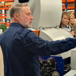 Der Rundgang endete, wie sollte es anders sein, mit der Besichtigung des Falztec-Showrooms, der im Herbst 2024 fertiggestellt wurde. Dort erklärten Martin Malek und sein Team den Gästen nochmals im Detail, wie die Falztec GmbH bei der Maschinenüberholung vorgeht und zeigten an Beispielen auf, wie die Systeme vorher und nachher aussehen – und anhand einer Live-Demo, wie sie dann aufgearbeitet wieder in der Produktion agieren.