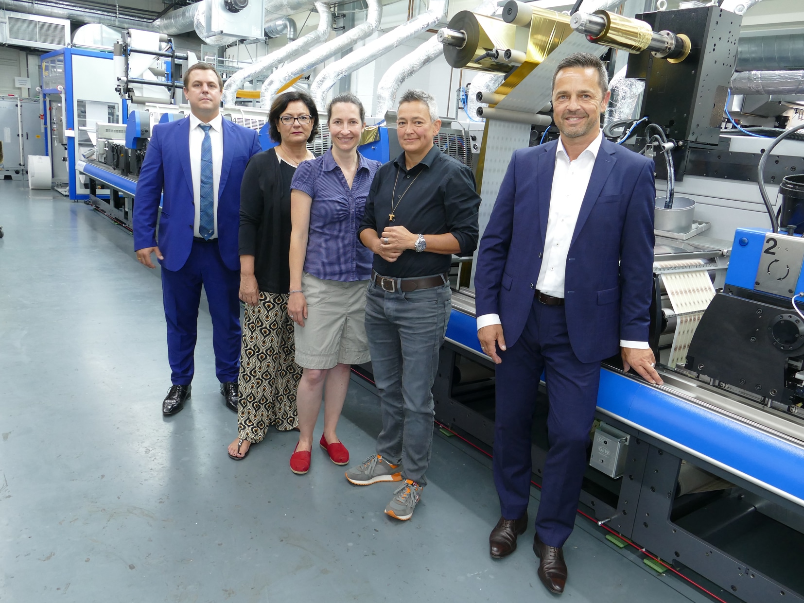 2021 stand die Ersatzinvestition für die beiden Rollenmaschinen von Gallus an. Die ursprünglich gewählte Maschinenkonfiguration hat sich in den 13 Jahren Produktion bewährt und wurde 1:1 übernommen. So kann das Unternehmen auch weiterhin effizient und hochwertig Offset-, Flexo- und Siebdruck mit Kaltfolie, Heißfolie, Rückseitendruck, Kaschierung und Laminierung kombinieren. Ein Pantec-Rhino-S410-Flachbettheiß- und Blindpräger sowie ein vollautomatischer Rollenwechsler ohne Maschinenstopp von Vebex ergänzen die Möglichkeiten. Beide Maschinen sind mit sehr viel Zubehör ausgerüstet, wie zum Beispiel mit der neuen Plattenbiegevorrichtung u.v.m. Die Druckwerke und die Einheiten können zwischen den beiden Maschinen getauscht werden.
