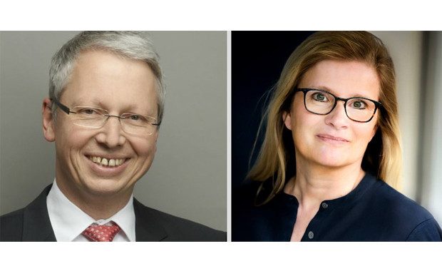 Die Keynote-Speaker Michael Carl (2bAhead) und Dr. Bettina Sunderdiek (Stiftung Zentrale Stelle Verpackungsregister).(Bild: DFTA Flexodruck Fachverband e.V.)