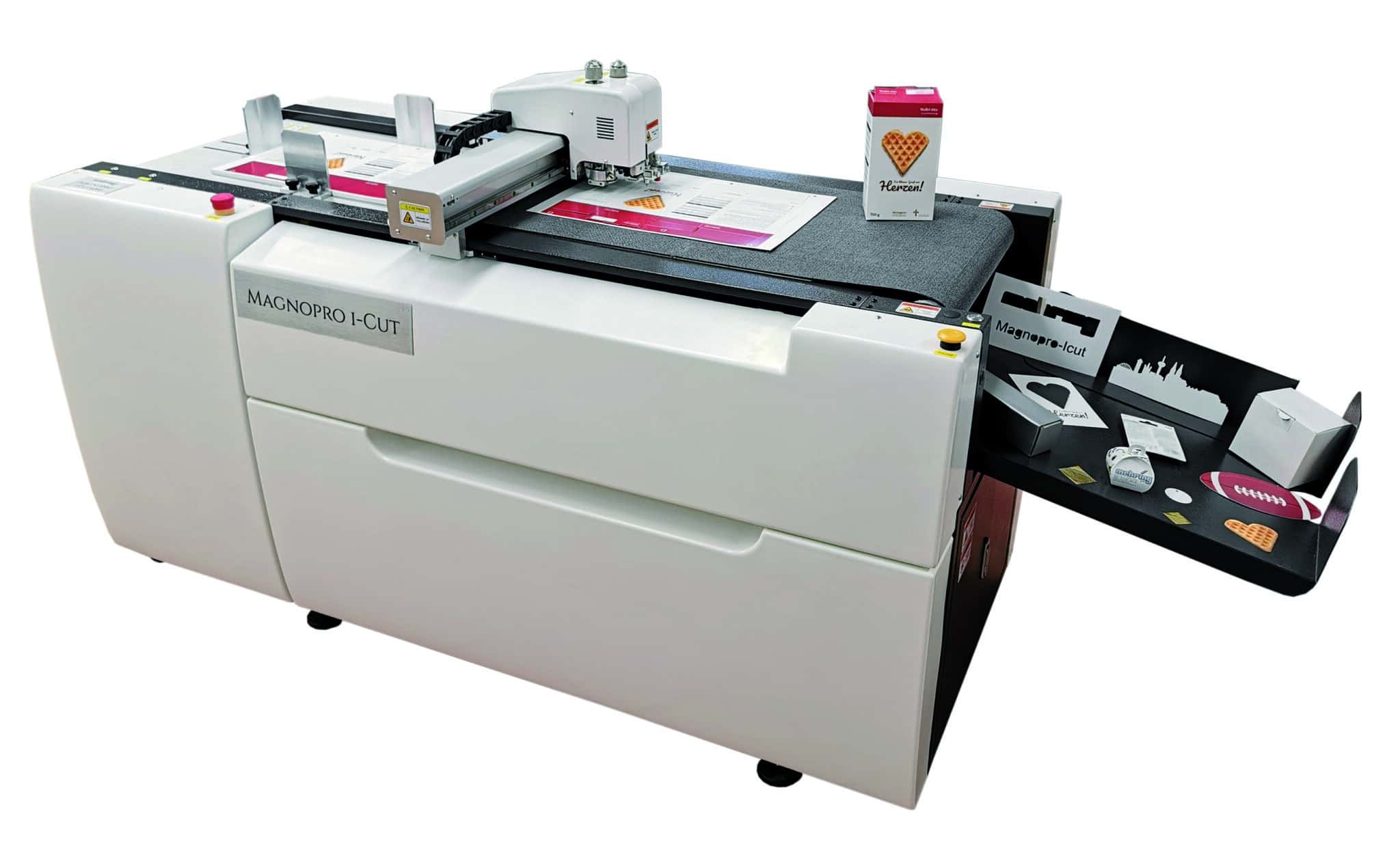 Eine Digitalstanze auch für das Mittelformat: Mit der Magnopro i-Cut lassen sich individuelle Stanzungen, Rillungen, Perforationen und Anschnitte fertigen. Sie kann bei der Produktion von Mappen, Faltschachteln, Aufklebern, Kreativstanzungen, Verpackungen, Magnetfolien, Wellpappen, PP, PVC, EVA, Gummi oder Leichtschaumplatten ihre Verwendung finden.