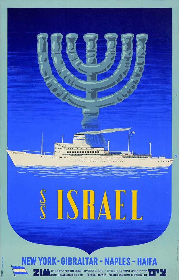 Mit Art-Déco-Anklängen: Israelische Dampfschifffahrtslinie (ZIM), Gestaltung: Otte Wallish (1955).