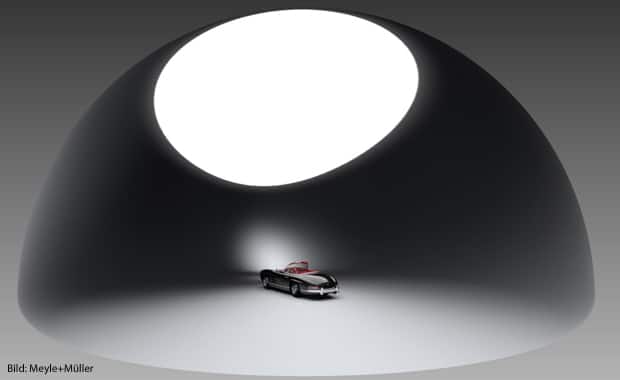Nun wird um das Fahrzeug ein "Dome" gesetzt, damit die realen Lichteffekte eingefügt werden können.