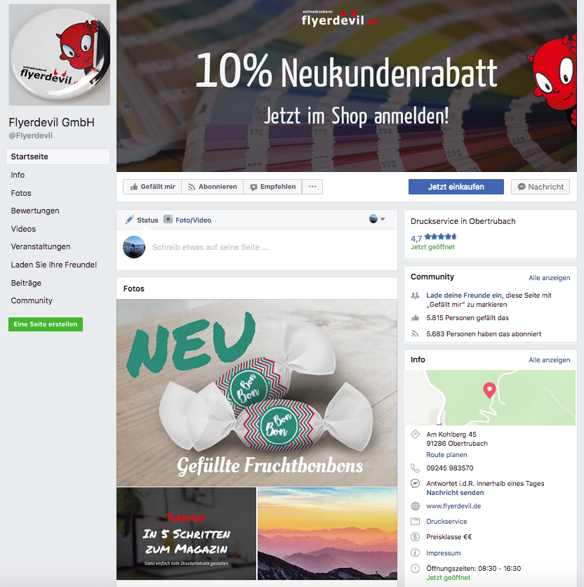 Die Erfolgsstory von Facebook ist atemberaubend: Weltweit nutzen 1,86 Mrd. Menschen (Stand Dezember 2016) das soziale Netzwerk monatlich. Das seit 2012 börsennotierte Unternehmen zählt zu den 25 wertvollsten Marken der Welt. Kaum ein Unternehmen lässt sich heute noch die Chance entgehen, sich mit einer Facebook-Unternehmensseite online zu präsentieren, aktuelle Informationen, Angebote und Leistungen darzustellen. Auch Druckereien versuchen über den sozialen Kanal Kunden zu erreichen. Wir haben die Facebook-Seiten von Druckereien unter die Lupe genommen und hier die Druckereien mit den meisten Fans für Sie aufgelistet. (Stand der Bewertung: 21. März 2018)