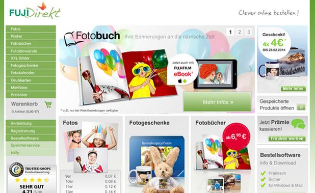 Auf Fujifilmdirekt.de können Kunden ihr Fotobuch in 13 Formaten kreieren. Die Bücher können im Digitaldruck gedruckt oder auf echtem Fotopapier belichtet werden. Der Einband kann mit einer Spezialbeschichtung geschützt werden.