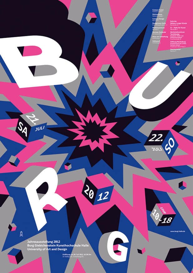 Plakat: Burgknall - Burg Giebichenstein Jahresausstellung aus einer Serie von fünf Plakaten