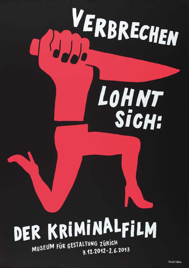 Gestalter: Flag, Bastien Aubry, Dimitri Broquard, CH-Zürich Plakat: Verbrechen lohnt sich: Der Kriminalfilm, Serie von zwei Plakaten Auftraggeber: Zürcher Hochschule der Künste/Museum für Gestaltung, Zürich Druckerei: Serigraphie Uldry AG, Hinterkappelen/Bern Format: je A0 (Ausrichtung: HF ) Drucktechnik: Siebdruck Kurzerläuterung des Gestalters/Einreichers: