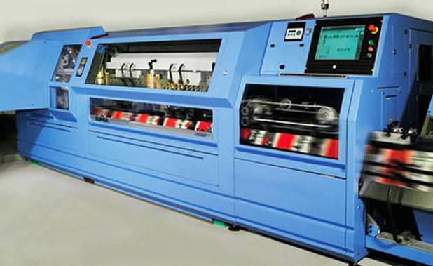 Der Sammelhefter Müller Martini Supra arbeitet mit 30.000 Takten pro Stunde sowie mit maximal 30 Anlegern.
