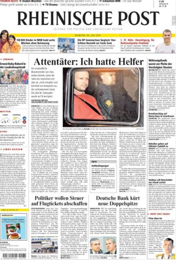 4. Platz: Die Rheinische Post (Gesamtausgabe) – mit ihrem Erscheinungsgebiet in den Regionen Düsseldorf, Niederrhein und Bergisches Land – verkaufte im 2. Quartal 2011 eine Auflage von 346.856 Exemplaren, das ist gegenüber dem 1. Quartal 2011 ein leichtes Minus von 0,57 Prozent.