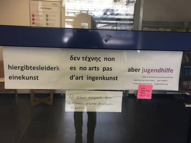 Printprodukt in der Neuen Neuen Galerie/Hauptpost: Nicht alle Bilder und Schilder zählen zur Ausstellung, haben aber trotzdem ihren eigenen künstlerischen Anspruch.