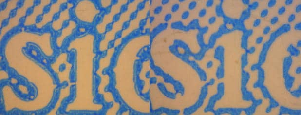 Links die fotopolymere Druckform, rechts die elastomere Druckform. Getestetes Kriterium: Halbton.