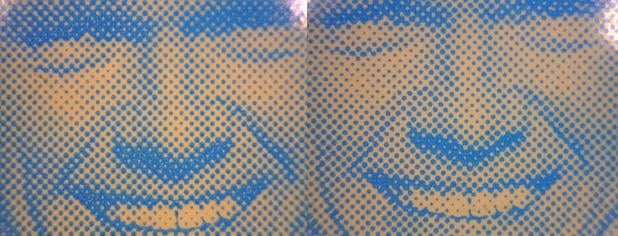 Links die fotopolymere Druckform, rechts die elastomere Druckform. Getestetes Kriterium: Halbton.