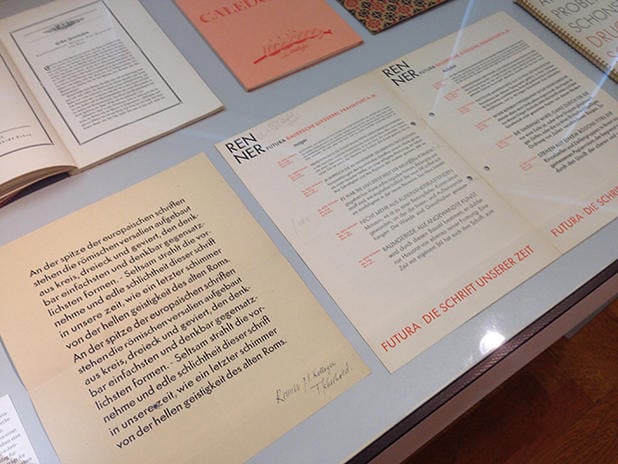 Blick in die Ausstellung „Tschichold in St. Gallen“: zu Jost Hochulis Entdeckungen gehören auch zwei Funde zur Futura.