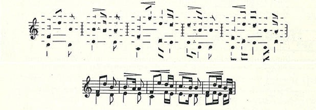 Notensatz ist trotz Digitalisierung und Automatisierung immer noch Handarbeit. Hier ein Beispiel für typografischen Notensatz von Immanuel Breitkopf aus dem 18.Jahrhundert. Oben: die einzelnen Typen, unten die fertig gesetzte Zeile.