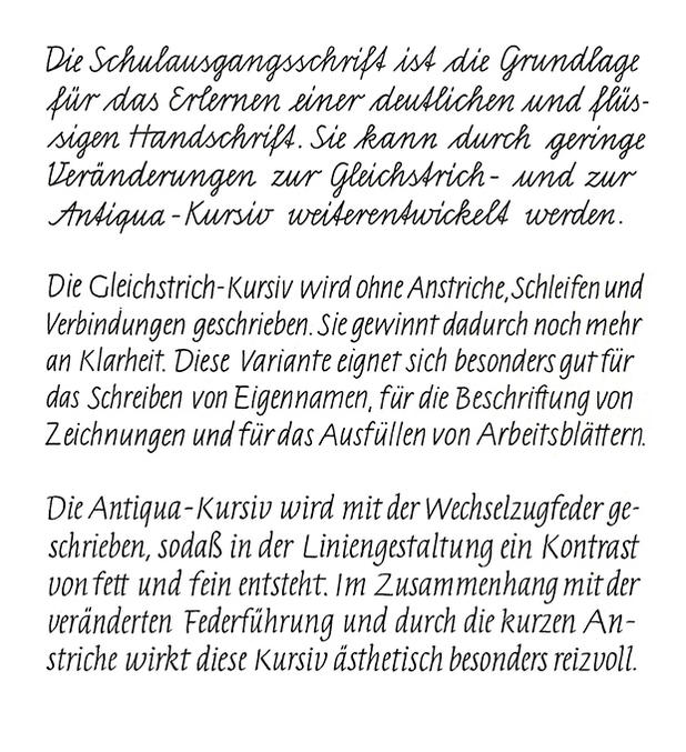 Entwürfe der Schriftgrafikerin Renate Tost für den Schulunterricht. Ihre Schulausgangsschrift SAS wurde 1968 in der DDR verbindlich eingeführt und kam nach der Wende auch in einigen alten Bundesländern (z.B. Bayern) zur Anwendung. Schriftmuster: Renate Tost
