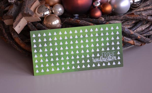 Diese moderne Weihnachtskarte wirkt zwar wenig weihnachtlich, das ungewöhnliche Design hat uns trotzdem gut gefallen.