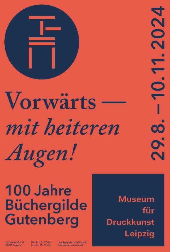 Die Jubiläumsausstellung zum Jubiläum der Büchergilde Gutenberg findet im Museum für Druckkunst in Leipzig vom 29.8. bis 10.11.2024 statt.