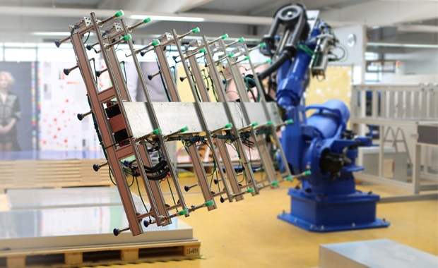 Der neue Plattenladeroboter von Agfa automatisiert wiederkehrende, ansonsten manuell ausgeführte Arbeitsschritte, wie das Laden der Platten in Kassetten für Autoloader oder das Fixieren der Paletten auf der Basispalette von Palettenloadern.