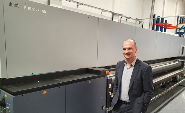 Der britische Druckdienstleister Aurora Graphics hat in das Großformatdruck-System Rho LED 512 R von Durst investiert. Im Bild: Geschäftsführer Mike Stearn.(Bild: Durst)