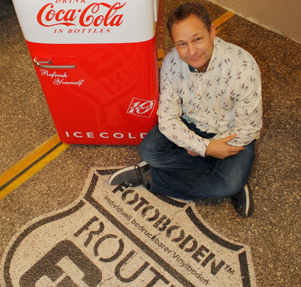 Die Geschäftsräume der Visuals United AG in Kaarst sind selbstredend allesamt mit Fotoböden ausgestattet und daher der perfekte Showroom für das Unternehmen. Quer durch die Kantine verläuft beispielsweise die berühmte, amerikanische Route 66, wie Geschäftsführer Timo Michalik beim Rundgang zeigte.