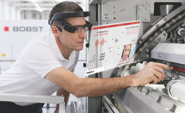 „Helpline Plus AR“ nennt sich ein neuer Fernassistenz-Service von Bobst für die Verpackungsbranche, der ein Smart Headset mit Augmented-Reality (AR)-Brille verwendet.