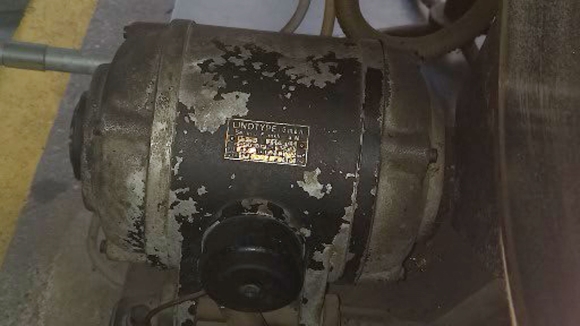 Dieser Elektromotor einer Linotype-Setzmaschine muss repariert oder ersetzt werden.