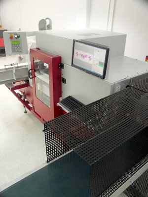 Mit der Kösel-Farbschnitt-Maschine können vierfarbige Motive auf die Schnittkanten von Büchern aufgedruckt werden.