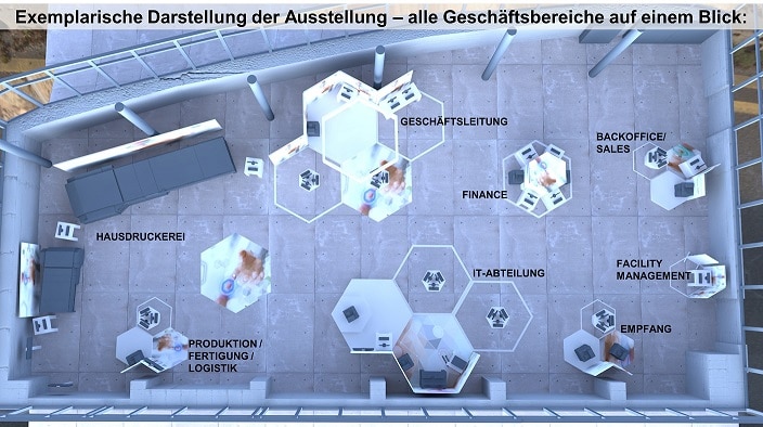 Die Ausstellung der FUTUREADY-Tour zeigt auf, wie der IT Services Provider und Marktführer Production Printing Unternehmen ganzheitlich mit seinen digitalen Technologien unterstützt. Hierzu bildet Konica Minolta vor Ort ein komplettes Unternehmen mit den Bereichen Empfang, Geschäftsleitung, IT-Abteilung, Finance, Backoffice/Sales, Facility Management, Produktion/Fertigung/Logistik und Hausdruckerei ab. In Live-Demonstrationen an unterschiedlichen Themeninseln erleben die Besucher smarte Lösungen und technologische Expertise, die sie auf ihrem Weg der Digitalisierung begleiten.