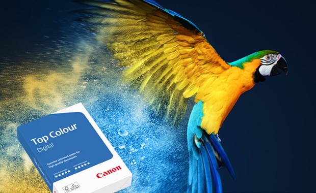 Laut Canon soll das neue Digitaldruckpapier "Top Colour Digital" im Druck für eine hohe Brillanz in den Farben und Laufsicherheit in den Maschinen sorgen.(Bild: Canon)