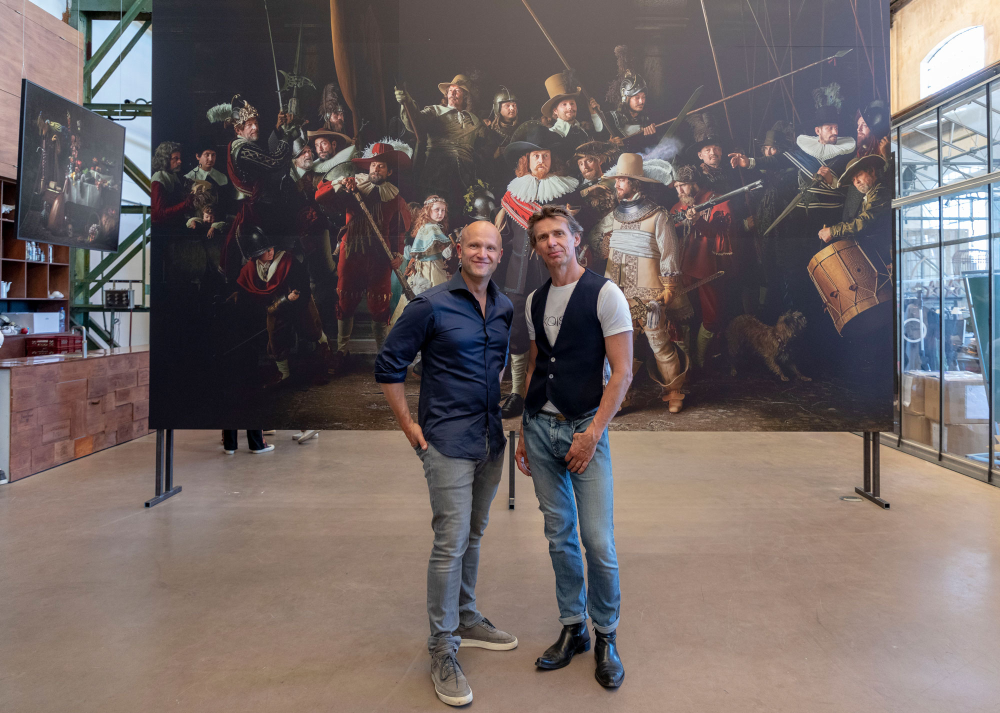 Nicht nur das eigentliche Meisterwerk, auch alle weiteren Leinwände der großen Ausstellung wurden mit Großformatdruckern von Canon bedruckt. Die eindrucksvollen Porträts, die historischen Kostüme und Waffen des 17. Jahrhunderts sind detailliert und in hoher Qualität wiedergegeben. Selbst der feine Flaum auf den Wangen der Darsteller ist bis ins einzelne Härchen erkennbar – möglich machte das der Drucker Océ Arizona 480XT. Nach dem Druck sorgte ein lasergesteuertes Schneidegerät für einen auf den hundertstel Millimeter genauen Zuschnitt der bedruckten Platten, die so für das endgültige, 420 x 535 Zentimeter große Bild nahtlos verbunden werden konnten. Für die Einzelporträts der Milizen kamen spezielles Fotopapier sowie der ImagePrograf Pro-4000 Drucker von Canon zum Einsatz. Angefertigt wurden die Drucke von Het Beeldgebouw, einem niederländischen Canon-Partner und Teil der Hollandridderkerk.