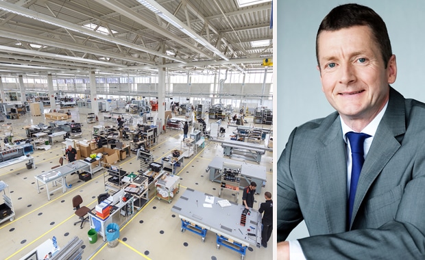 Künftig werden alle Océ-Arizona-Flachbettdrucker im Canon-Werk in Poing gefertigt. Rechts im Bild: Jeppe Frandsen, Executive Vice President von Canon Europe.(Bild: Canon)