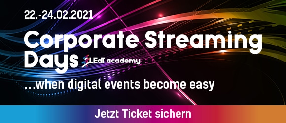 EVENT PARTNER, das führende B2B-Medium für Live Communication, und PRODUCTION PARTNER, die marktführende Plattform für professionelle Veranstaltungstechnik, wollen daher ihr Fachwissen in einem digitalen Seminar vom 22. bis 24. Februar 2021 weitergeben. Teilnehmer der dreitägigen Workshopreihe „Corporate Streaming Days“ lernen die relevanten Aspekte von Online-Events kennen: Wie plane ich ein erfolgreiches Online-Event? Welche Tools und Technik benötige ich für einen Live-Stream? Welche Art von Streaming-Studio passt zu meiner Marke und meiner Botschaft und ab wann sollte ich professionellen Support in Anspruch nehmen?