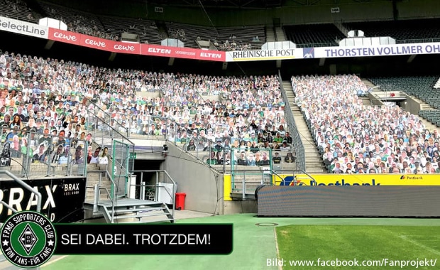 Wenn in diesem Monat die Fußball-Bundesliga tatsächlich mit Geisterspielen fortgesetzt wird, werden sich die Spieler von Borussia Mönchengladbach sicher nicht allein fühlen. Denn über die Aktion “Sei dabei. Trotzdem!” – und dank des Großformatdrucks – können sich Fußballfans einen “Pappkameraden” mit ihrem eigenen Konterfei bestellen und auf die Ränge des Borussia-Parks montieren lassen. Wie der FPMG Supporters Club e.V. auf seiner Facebook-Seite informierte, sind Stand Samstag bereits mehr als 10.000 Bestellungen eingegangen, nicht ganz die Hälfte davon ist bereits auf den Rängen installiert.