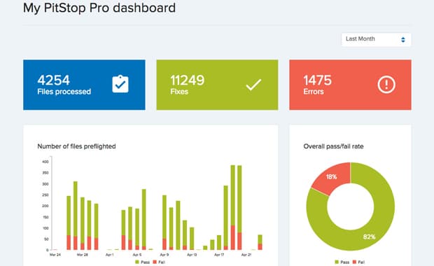 und erhält dann Informationen über die Nutzung von Pitstop und die Art von PDF-Dateien, die verarbeitet wurden.