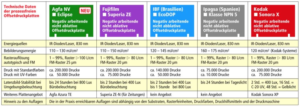 Aktuelle Anbieter sowie Vor-/Nachteile prozessfreier Druckplatten: