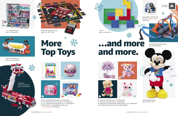 Ohne Preisangaben, dafür mit QR-Codes: Auch die gedruckte Ausgabe des Amazon-Spielwarenkatalogs verlinkt direkt in den Onlineshop.