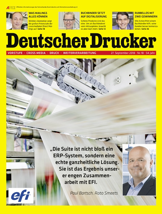 Diese und noch viele weitere Artikel finden Sie in der aktuellen Ausgabe von Deutscher Drucker. Hier geht’s zur Einzelheftbestellung für die aktuelle Ausgabe Deutscher Drucker Nr. 18/2018.