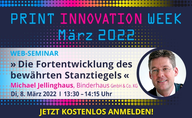 Betreibern des klassischen Heidelberger Stanztiegels wird in einem kostenlosen Online-Seminar (8.3.2022, 13:30-14:15 Uhr) eine zeitgemäße Nachfolgemaschine vorgestellt: Die Stanzmaschine NSF Excel von Therm-O-Type kann Stanzen, automatisches Entgittern, Heissfolienprägung, Blindprägung, Anstanzen, Perforieren und Sleeken. Referent ist Michael Jellinghaus von der Firma Binderhaus.