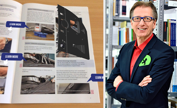Unter der Marke "AR4more" bündelt die Copy-Druck GmbH (Hamburg) ihre Dienstleistung rund um die "technisierte Drucksache", bei der Druckprodukte über AR-Codes mit interaktiven Inhalten angereichert werden, wie im Beispiel Schulungsunterlagen. Im Bild rechts: Jens Beckmann, Geschäftsführer von Copy-Druck.