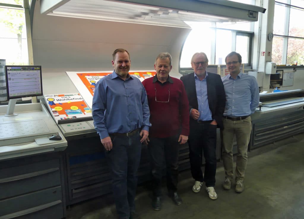 Sie bilden die Führungsriege der Druckhaus Götz GmbH (von links): Sebastian Götz und Thomas Götz sowie Ulrich Götz und Florian Götz stellen sich mit ihrem Familienunternehmen gemeinsam den Herausforderungen der immer anspruchsvoller werdenden grafischen Industrie. (Bild: Robert Glaser)