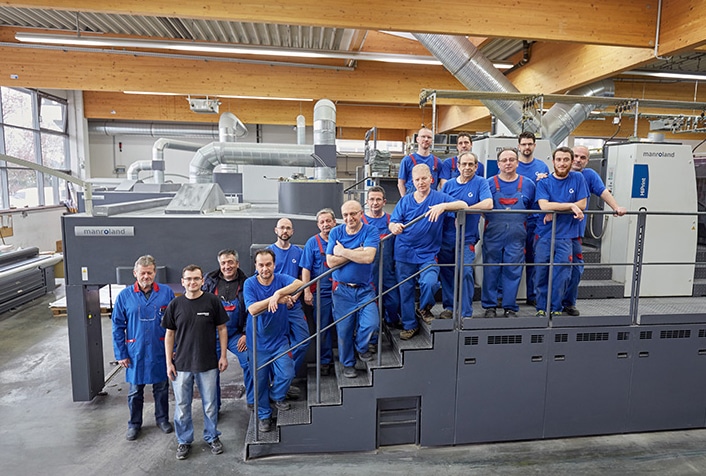 Das »Team Print« der Druckhaus Götz GmbH wartet gespannt auf die neue Manroland Evolution 708 PLV mit Direct Drive, die im September 2020 geliefert werden soll. (Bild: Druckhaus Götz)